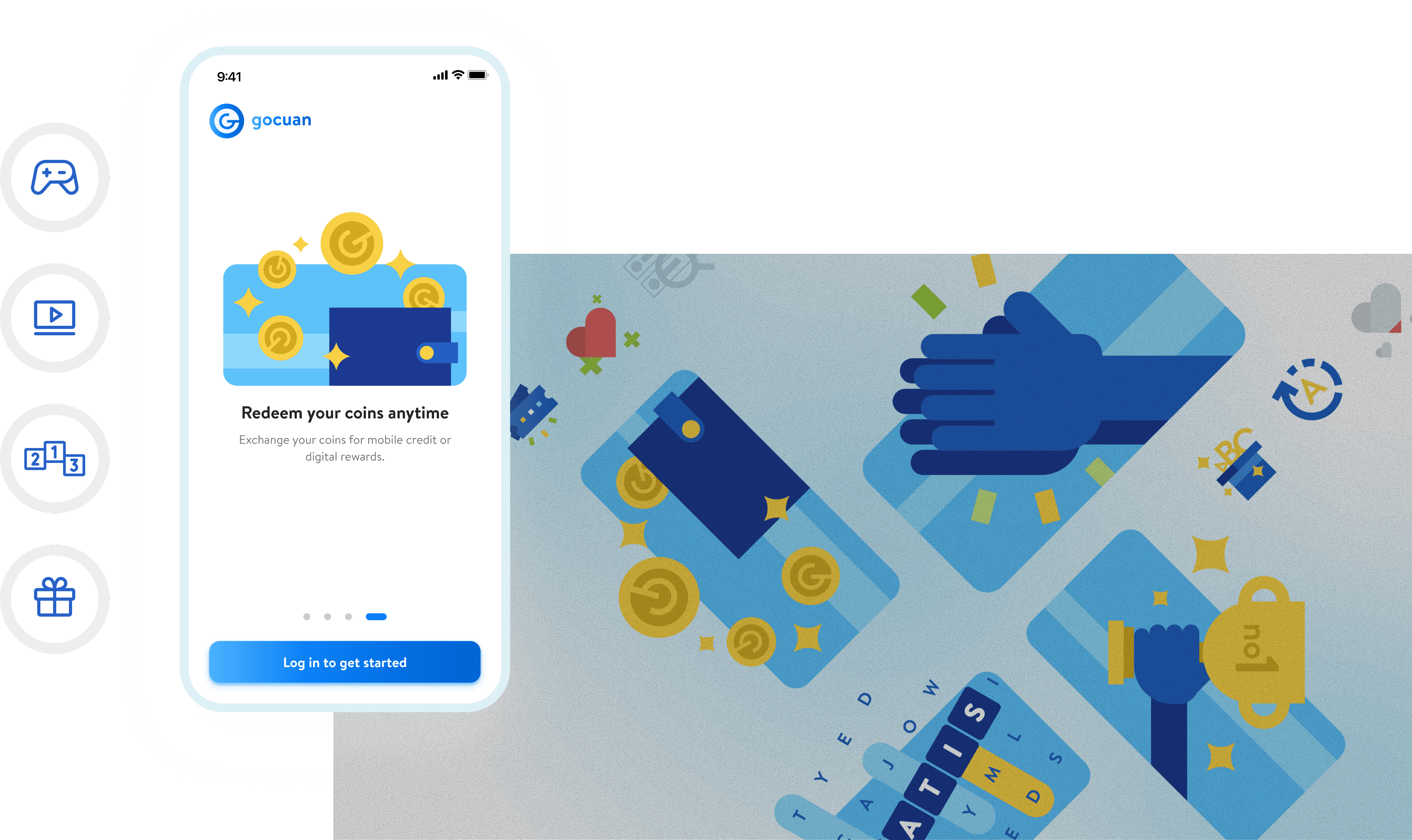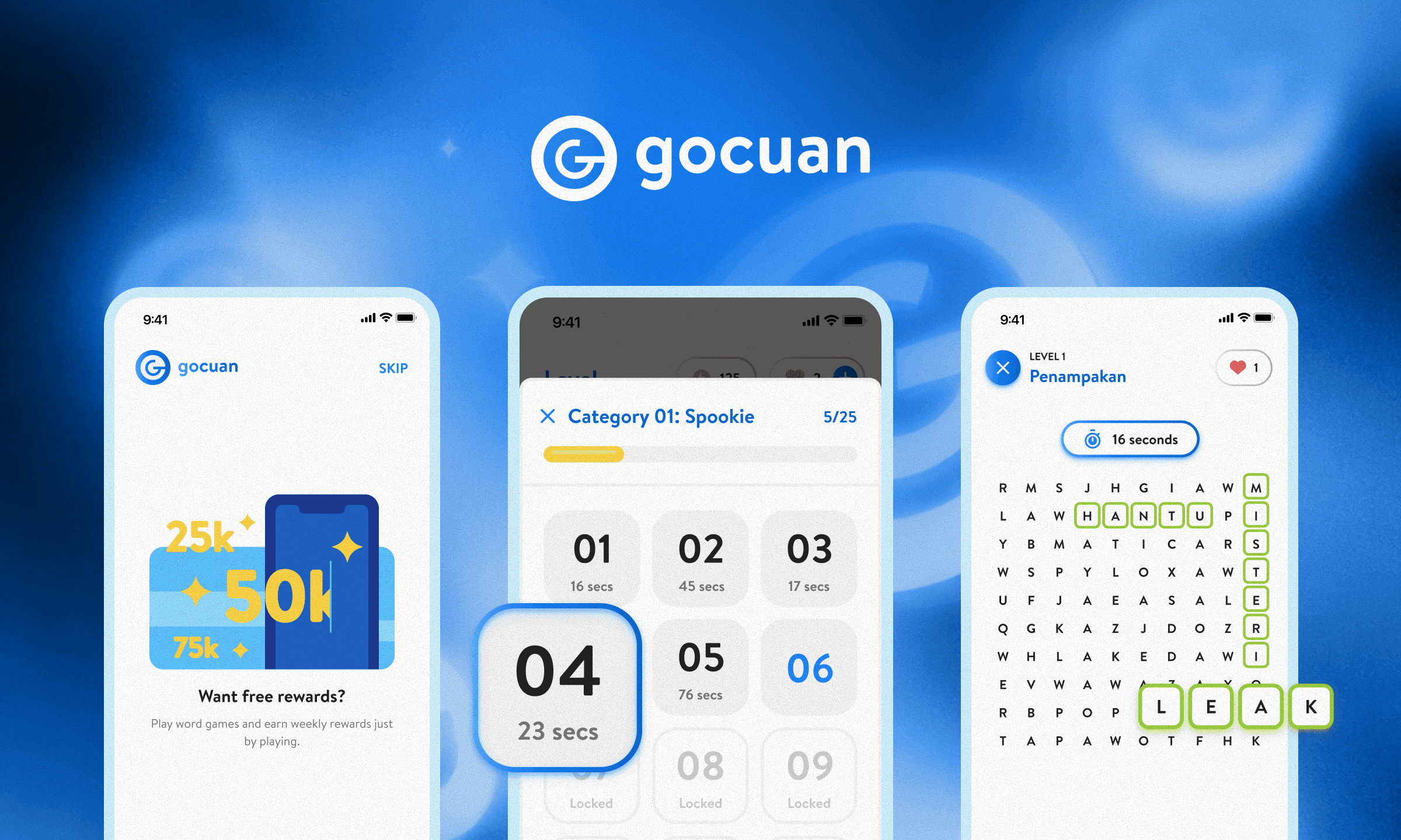 Gocuan is a word-based mobile game that turns ads into part of the gameplay. Users earn rewards by playing short word challenges, where watching ads is part of the experience.
