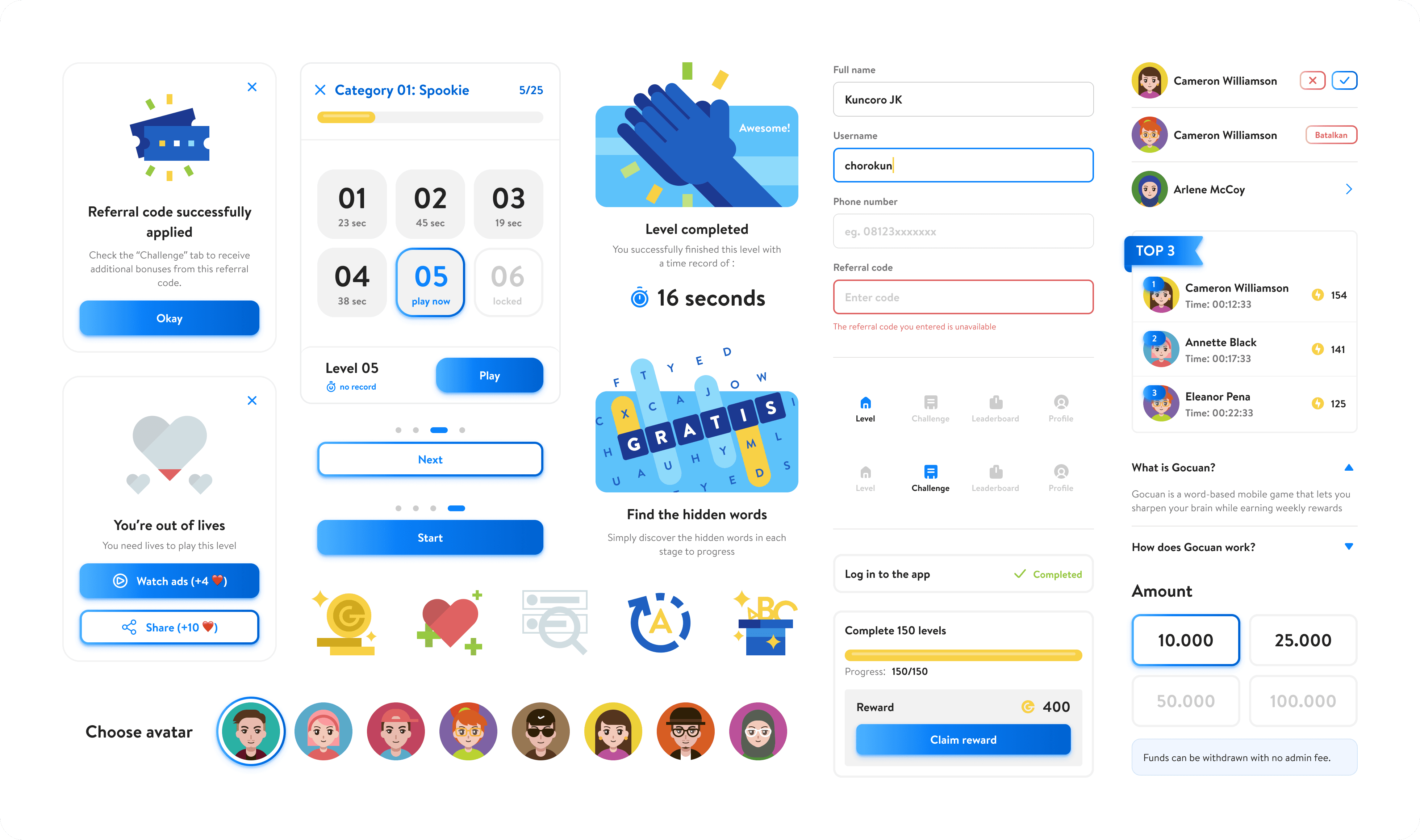 Onboarding was simplified to clearly explain how Gocuan works, how rewards are earned, and why playing is worth the time. Login and registration are fast, with referral rewards creating immediate value.